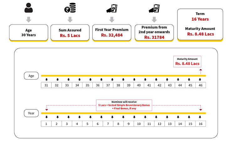 • The customer gets the tax-free maturity under this plan which includes the bonus also along with Sum Assured.