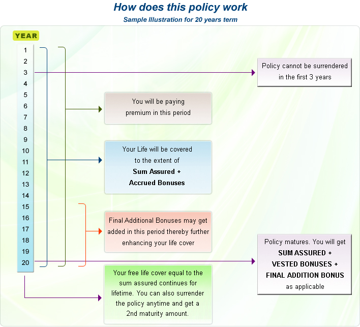 A combination of Endowment and Whole Life Plan. Provides for a maturity amount after a pre-decided term and a whole life cover thereafter too